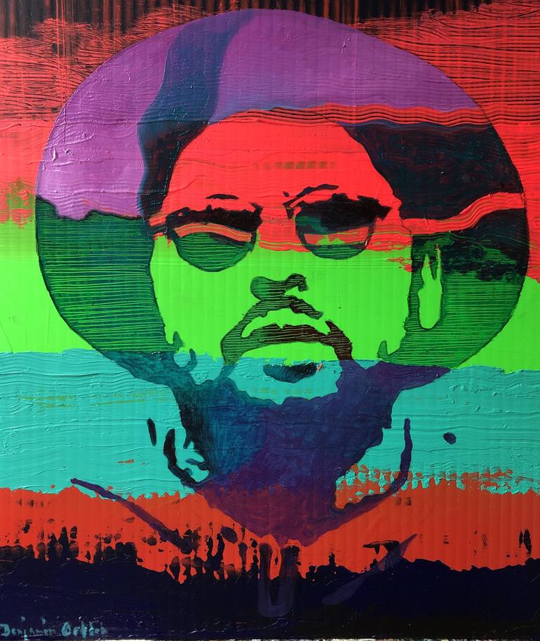 Another face of the young American Rapper and songwriter from the Rap and Hip Hop scene emerges out of an abstract backdrop painted on acrylic glass and praises for freedom and rightiousness.