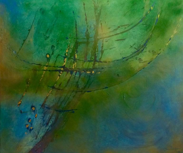 “And suddenly it’s a mountain” explains Jan Lucker about one of his paintings he shows at his atelier in Steyl. It sounds almost apologetic, as if he can’t do a thing about it. And in some way, it really is like that: “I never meant it to be a landscape and I never thought about that as I was painting it. Not even mountains. Not even before I started the painting.” The question rises, what does he think about before he starts painting. “About nothing. I’m sitting in front of the canvas looking at it. Nothing more. After a while I take a few tubes of paint, which mostly I change later on for some other tubes. At a certain moment I know where to put the first plane, a line or a streak, straight, crooked stroke, whatever. And then something’s added to that. Something comes here, I then think, and there. Until I stop thinking and then it becomes fun, because I can ride along with chance. Every gesture with the brush comes from the one before and leads to the next. It grows. It paints itself, so to speak.” When it’s finished, he often thinks: “Hey, how about that…?” There is almost nothing left of the first streaks. And no, it’s not a mountain. Although you can get that association. It also doesn’t have a message: “It’s color, stains, planes and streaks, big and small, in al imaginable colors.”