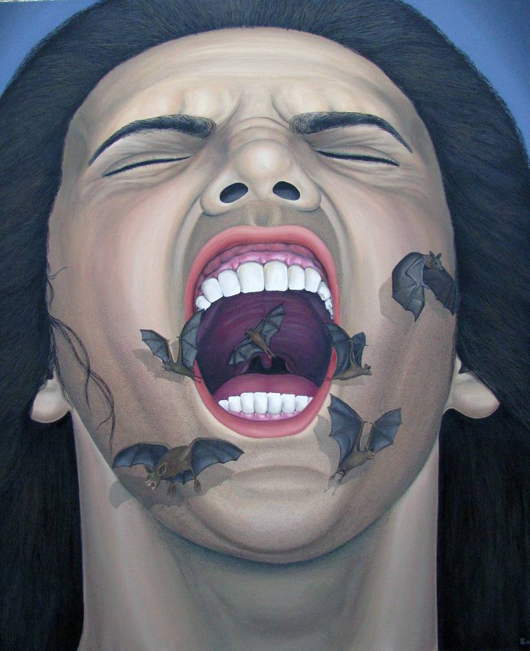 This original oil painting is one of the latest artworks of the talented contemporary Bulgarian artist Grigor Velev, deeply inspired by surrealism and gothic art. It represents one screaming man portrait, as its trait is to present the world solely from a subjective perspective, distorting it radica...