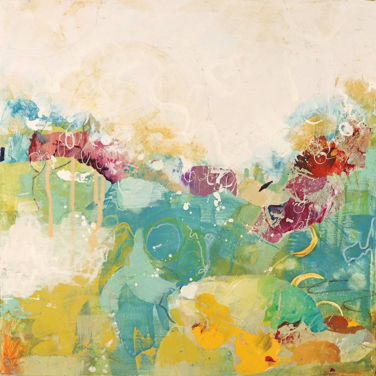 Born in Portugal, Maria’s family emigrated to New York where she attended school and went on to graduate from Parson’s School of Design (NY) with a BFA in Illustration. Her career has spanned graphic design, print production, web design, computer graphics trainer, and technology research and strategy. Nevertheless, throughout Maria has pursued her primary passion of creating art. After many years of working traditionally in a realistic style using oil on canvas and wood, Maria transitioned to abstract painting. Creating abstract work has allowed her more freedom and opportunity to showcase feelings, intuition, ideas, and individual expression. Transitioning to abstract work has been challenging and exciting and taken a lot of determination and hard work to reach the point of finally being happy with the work being created. 2020 and 2021 were very challenging years for the US and the world. It prompted many people to reassess their role in life and what changes needed to be made, the pandemic changed a lot of our thinking. This current work is what emerged with doing things differently and going for it. ‘I am feeling the joy of expressing what I like and letting the colors and shapes run free’. Maria’s work is mixed media using acrylic, collage, and a variety of mark-making tools. Working on cradled wood panels and gallery-wrapped canvases, the artwork is comprised of multiple layers of paint, marks, collage, drawing, and textures. Color, values, composition, and shapes are used to add interest to the work. Many of the abstract paintings have been composed so they can be displayed in any orientation the viewer prefers.
