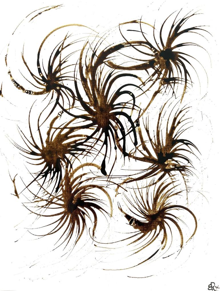 Sea Creatures #4 is a no-contact painting using seaweed brown acrylic ink on canvas paper Size ISO A3 Weight 300gsm (140lbs). The original comes ready to frame. Signed by the artist Original with Numbered Certificate of Authentication. From the Sea Life Collection - This experimental spontaneous c...