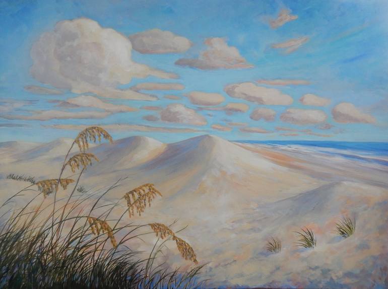 I live on the coast of North Carolina and get a lot of my inspiration from going to the beach. I especially like to paint sand dunes with little glimpses of the ocean. I felt as though this painting needed something in the foreground, so I painted a detailed look at the sea oats up close. This is...