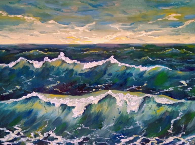 Sea Waves Oil Painting Sunrise Sunset Canvas Original Art Seascape Original Art Impressionist Sea Wall Art, Sea Sunrise Sunset Oil Painting. Sea Waves Impressionist Seascape Wall Art Original Artwork is Morning Landscape Oil Painting perfect for Living Room, Bed Room, Kitchen, Office and other space...