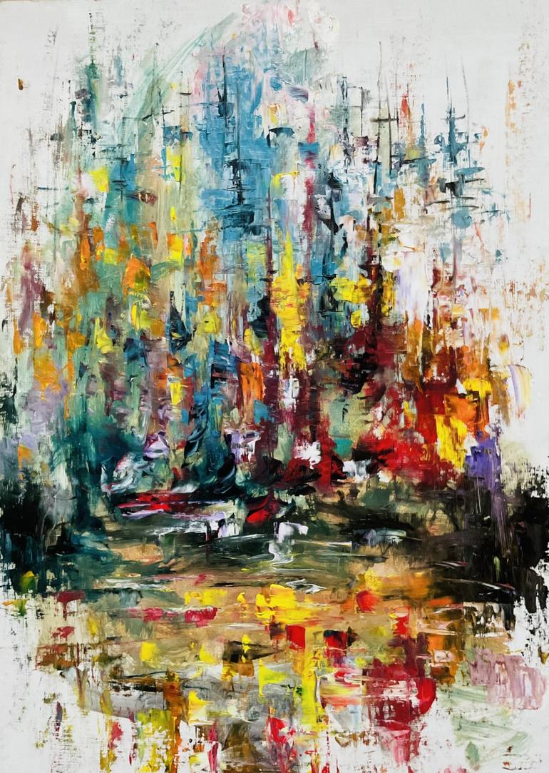 Oil on a wooden board. The surfaces left intentionally white highlight the wonderful colors even more! Saatchi Art Catalog Spring 2016, Vol. 2 Fall 2017 Vol.1. 2018.High Art Award in Hungary. Béla Kondor Fine Arts Award. I also send a handwritten thank you letter.