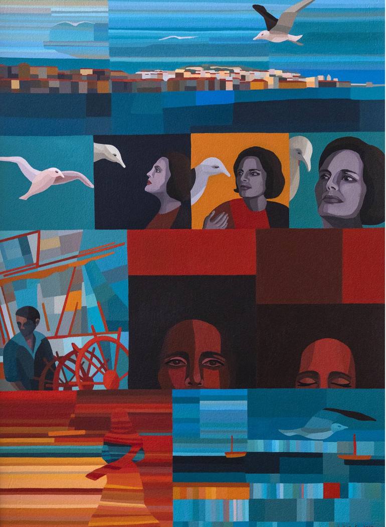 This painting is an tribute to Amalia Rodrigues, most famous Portuguese Fado singer. It illustrates the song named 'Seagull', written by Alexandre O'Neill and composed by Alain Oilman.