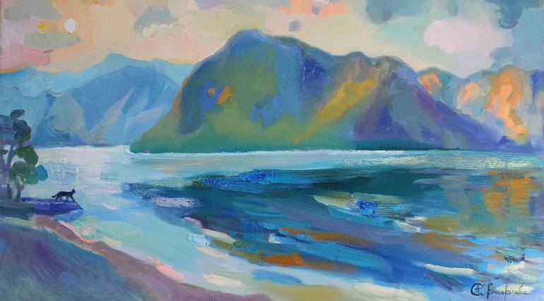The painting "The cat's journey" was painted from real landscape in wonderful country - Montenegro. If to be honest, I wanted to sit and enjoy the sunset, but I realized that I had to convey this beauty on canvas. What was stunning sunset over the Adriatic Sea. Except for us there was no body on the...