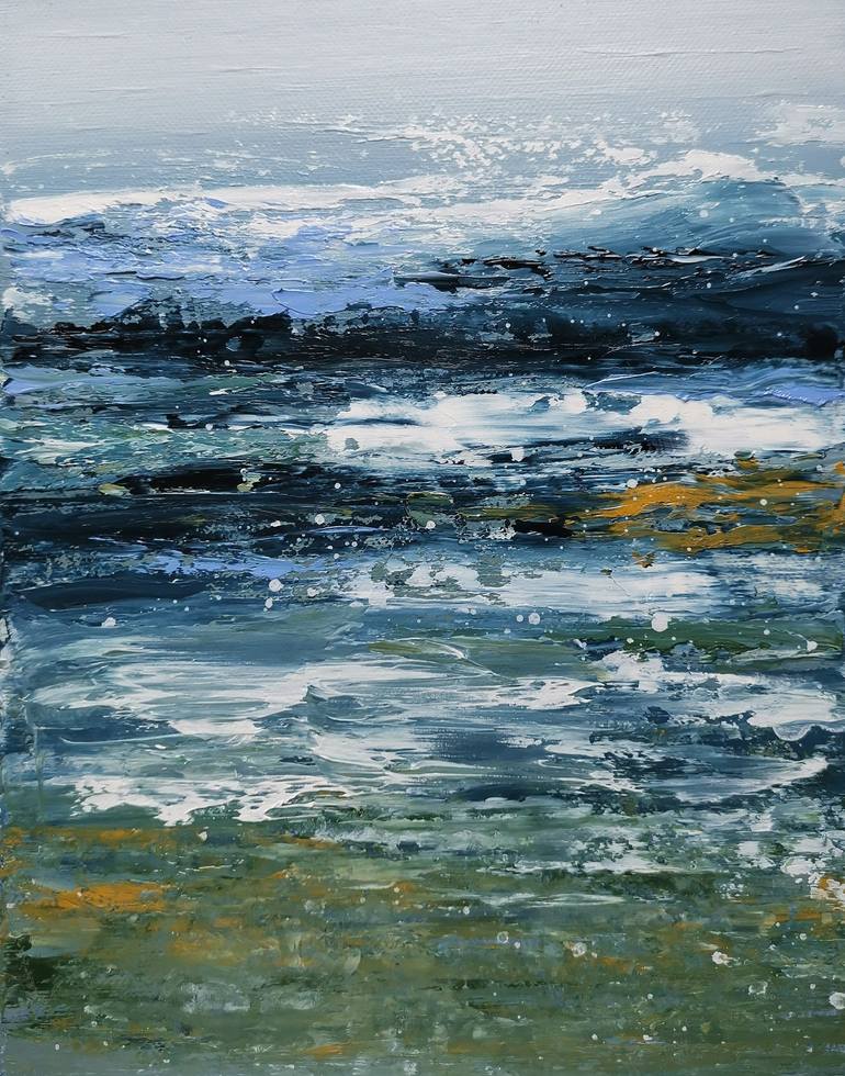 Small abstract oil seascape. Contemporary art, individual and unique. The beauty of nature and sincere emotions... Size: 25x20 cm. The 1,8 cm edges are painted dark grey. It is painted using professional quality oil paints on a cotton canvas. Exact colors may vary depending on monitor and light...