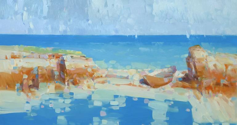 Artist: Vahe Yeremyan Work: Original Oil Painting, Handmade Artwork, One of a Kind Medium: Oil on Canvas Year: 2024 Style: Impressionism, Subject: Seashore, Size: 29" x 56" x 1'' inch, (74x3142x2 cm), Unframed, Stretched on Wooden Bar, Gallery Wrapped, Ready to Hang. Yeremyan is an Armenian ...