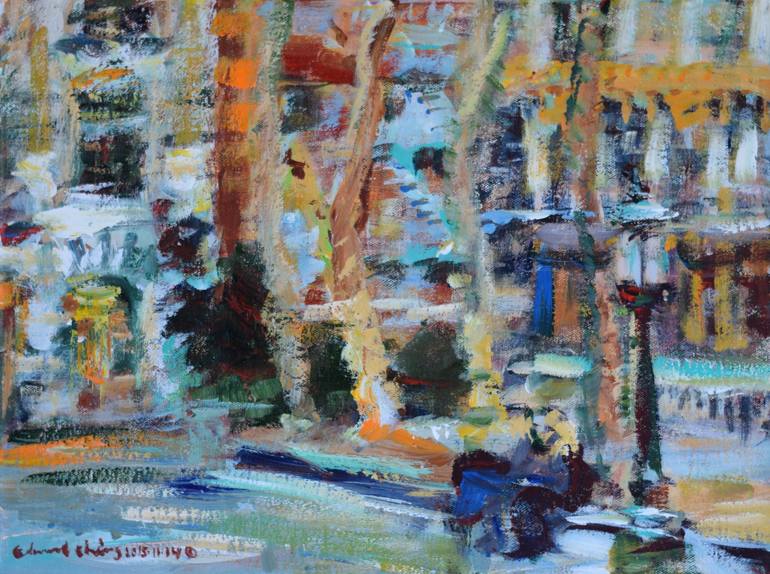 Friends and family of Edward Ching, going back to his early childhood, have long noted his exceptional drawing and painting abilities. Elementary school classmates, who reconnected with Edward decades later, attest they saved and still have pieces of his artwork. At the University of Massachusetts at Amherst, Edward decided to major in art. During a university summer art program in Italy, Edward won the "best portfolio" award, for his landscape watercolor paintings. "I studied very closely, John Singer Sargent's watercolors, from a book that was leant to me by Scott Prior, a well-known photo realist painter, and a visiting artist." After graduating with a BFA degree with a concentration in painting, Edward spent the 1990’s, selling his paintings and drawings in Key West, Paris, Austria, Germany, and Colombia. Edward later lived in Boston (where he is from), participating in the art scene in the 2000's, and teaching quill pen drawing in Harvard Square (Cambridge Center for Adult Ed.). Edward also won a first place award for an oil self portrait (Beacon Hill Art Walk). In 2007, Edward moved to New York City. In 2011, The Bruce Museum's landmark show, “Drawings by Rembrandt, his Students and Circle from the Maida and George Abrams Collection”, featured Edward's video on "Making a Quill Pen", which Edward created earlier. "I first picked up quill pen drawing (goose feather), in 1995, and stuck with it. I'd always been taken by the ink drawings of the old masters". Working from direct observation, “from life”, Edward often finds pictorial compositions and subjects in mundane settings. The ever-meandering physical forms from nature and Edward's rapidly assessing brush (or quill), attest to, the painter being the "athlete of the little muscles."