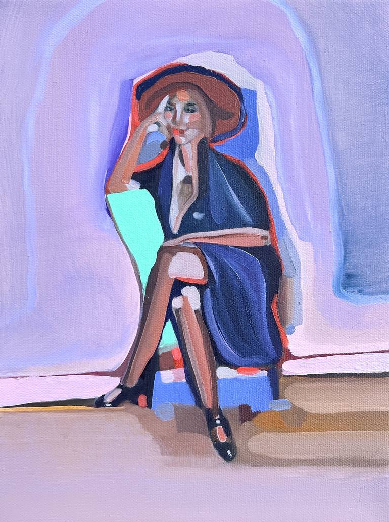 You can add original artwork to your space with this painting of a seated red-headed figure in purple for a bohemian and eclectic feel. It is 9x12 original oil painting on stretched canvas.