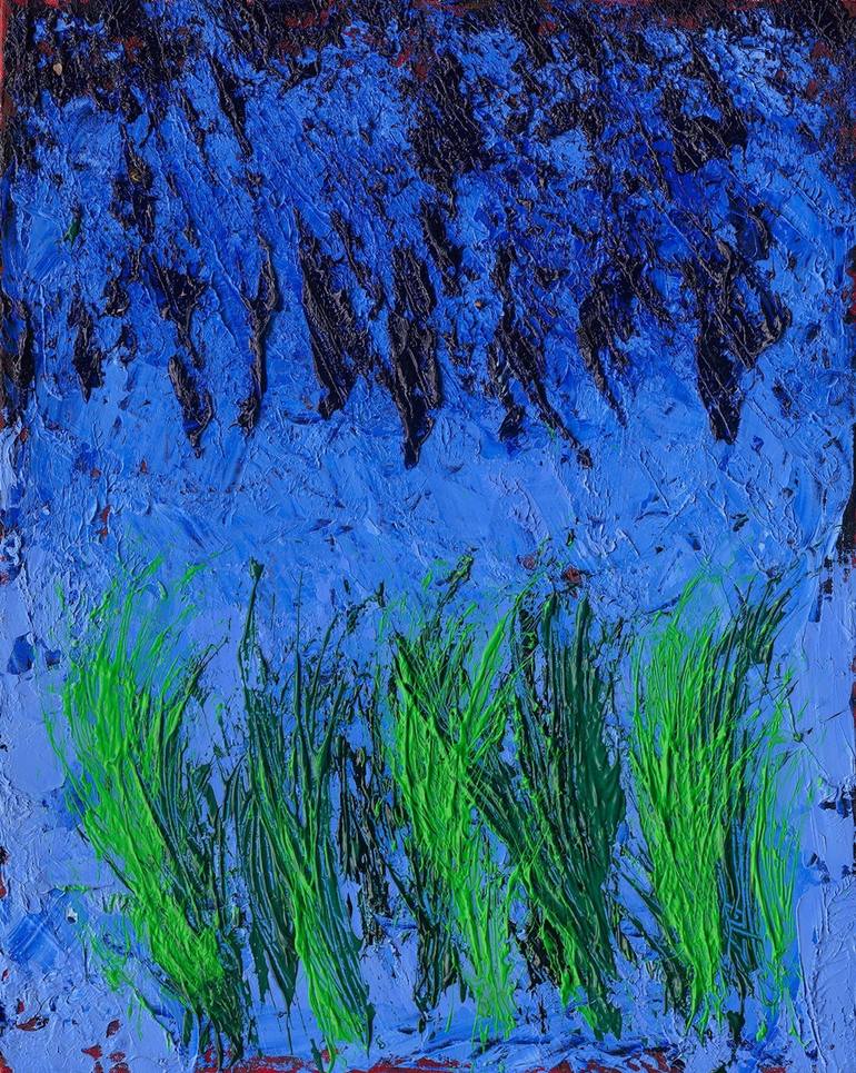 "Seaweed" is part of my series "Seaside" which I began on a cold and grey day on July 13th in 2019 (13 centigrades on a mid summer day!) because I needed some Blue. For the seaweed shown in the painting and the water as well I used several shades of Green and Blue. To give it more depth, underneath ...