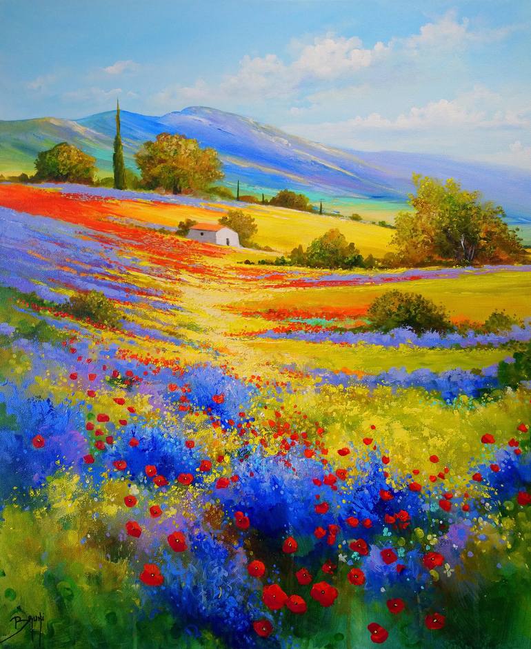 The landscaped perspectives in the figurative style of Eric Bruni invite you to daydream, to travel as the rendering is both delicate and powerful.