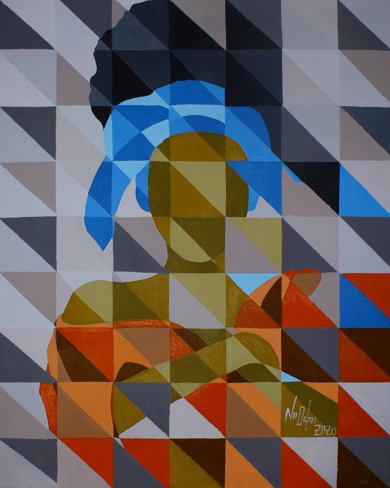 In his work, Tetteh condenses the internal sentiments and tensions of his characters and focuses them, using the eyes as the outlet for expression. In this way his subjects become independent bodies, bold and daring. By examining the psychological conditions we as humans are prone to experience, and then exhibiting them through physiological manifestations of that experience, Tetteh’s work is processual in nature, approaching each personality with care and consideration. His experiments are not only in content but in form, colour, and texture, manipulating paint through swift brush strokes and thick impasto. Theophilus Tetteh (b.1991) lives and works in Accra, Ghana. He studied Graphic Design and Painting at Marimus Art School, whilst continuing to experiment with different media. After finding solace in the pictorial possibilities that Expressionism offered, he found figurative paintings most effective in exploring emotive qualities. His figures which often appear static and singular, are in fact dynamic entities of the local culture. Tetteh has participated in solo shows and group projects across Ghana, notably the Kente Design Project for Kejetia Market (Kumasi, 2017) and National Theatre of Ghana (Accra, 2018). He was recently awarded Artist of the Year (2021) by the BE OPEN Foundation and is also a member of the Ghana Association of Visual Artists (GAVA).