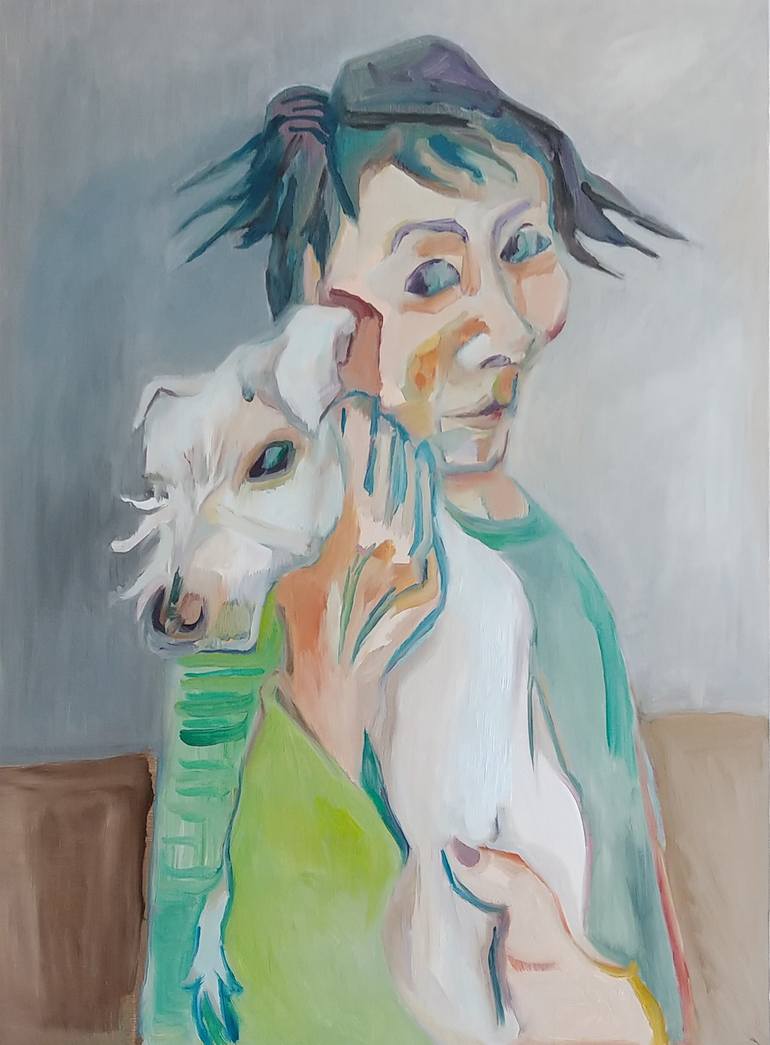 My white dog and I have lived together for 10 years. I met him when I had hard times of life. We have been and still are very happy together and know each other very well. I tried to convey the happiness of being together with a loving dog by painting as lightly as possible. There are not many ...