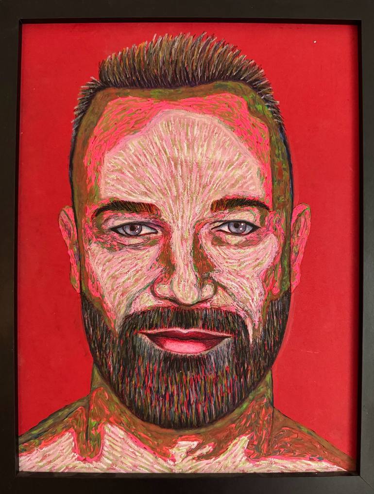 Acrylic and oil on panel 33x43cm with a black wooden frame, ready to hang.