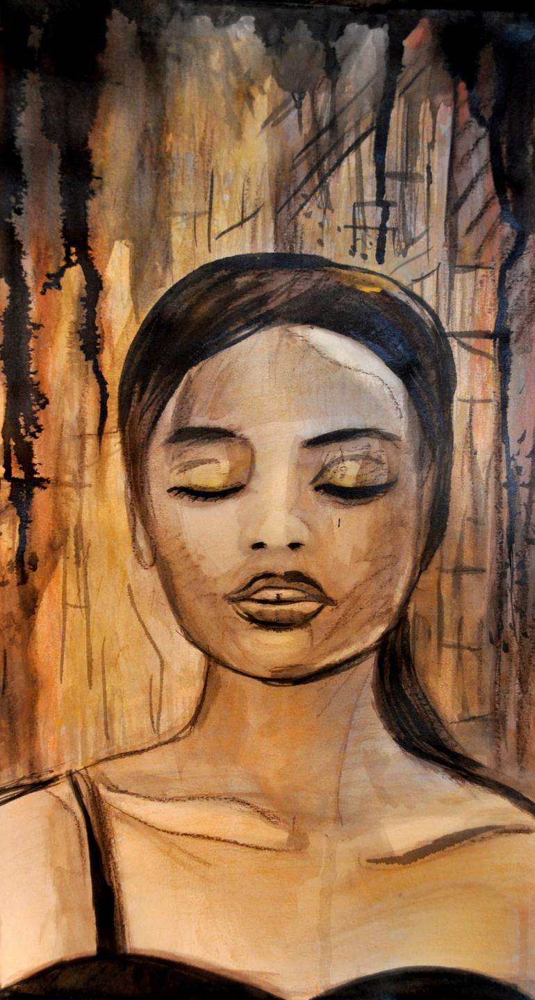 Watercolor painting inspired by the beauty of African women and street life in Lisbon, Portugal. Materials: watercolour paints, sepia and ink on heavy weight fine art paper. Signed on the back, signing on the front upon the request.
