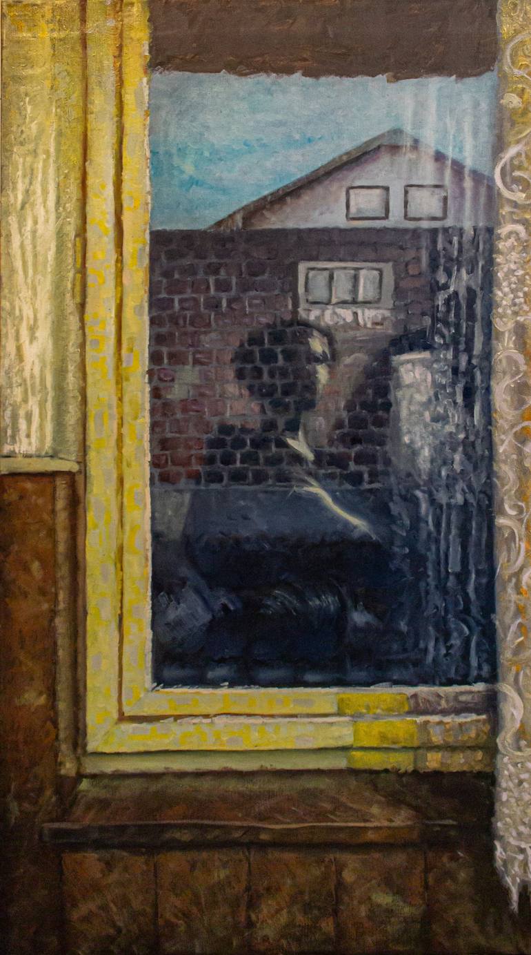 "This self-portrait is an exploration of light—its subtleties, its dualities, and its power to reveal, obscure, and connect. It captures a fleeting yet resonant moment: my reflection in a windowpane at dusk, suspended between two worlds. What drew me to this scene wasn’t just the opportunity to pain...