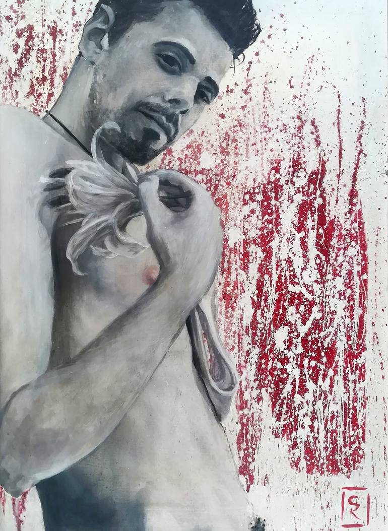 This work was a tribute to a Spanish photographer who died a few years ago, Toni Catany. The male figure is presented in a sensual pose and has a flower in his hand.
