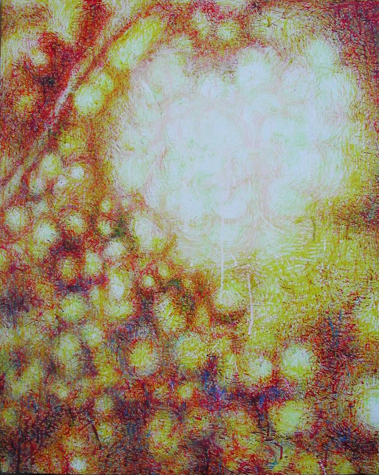 Starting with images of light I find, alter or create I separate all information to (black and white) versions of the four color channels used in printing (cyan, magenta, yellow, black). By using my hand–drawing with ink–and layering the different colors on top of each other, I achieve a reconstitut...