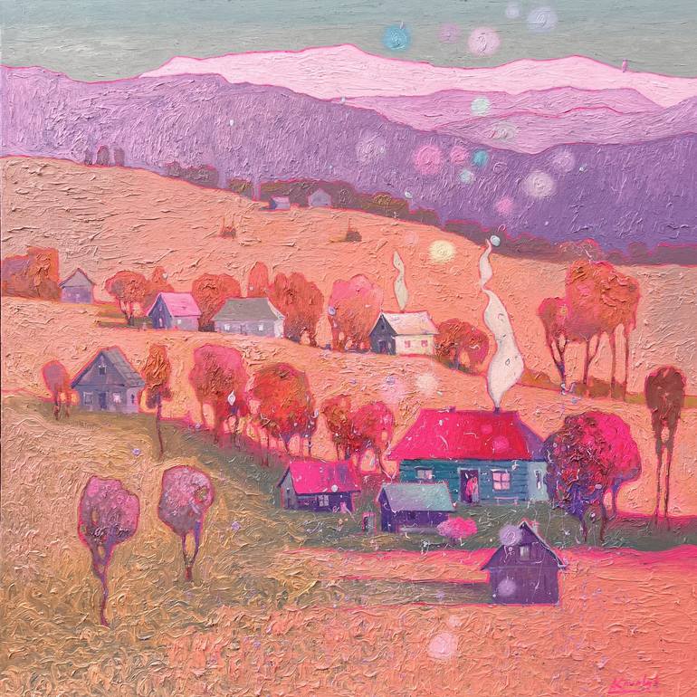 In crafting this artwork, my goal was to convey the serene yet lively spirit of mountain life. Through oil paints, I blended elements of expressionism with hints of impressionism, creating a scene that's both atmospheric and playful. Each brushstroke breathes a sense of dreaminess into the landscap...