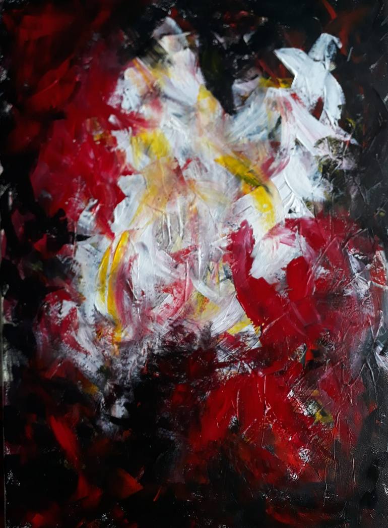 My abstracts n1 - 2- and 3 of the "Free flow" series are the depiction of music feelings merged with colour pigments. It is a process, better it is the starting and finishing process of painting while listening to a particular music. This is the n.1 The album I was listening to was "Rubinstein play...