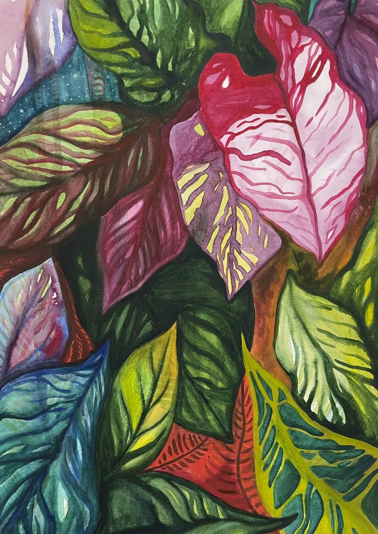My work focuses primarily on the exploration of nature and life cycles. I dissect the natural world to find profound meanings in the everyday. The use of exuberant flora, such as succulents, agaves, and monsteras, invites me to explore the boundaries between the natural and the fictitious. I seek to represent transcendence, the search for beauty, and elusive reality through organic elements stripped of their usual context.