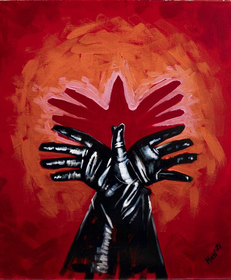 Finnish title: Varjokuvalintu Canvas "framed" with black duct tape, glossy varnish. The tape acts as a frame of sorts so no frame needed. The tape also has the glossy varnish on it. Shadow puppet series 2. This series is me experimenting with this brushstroke-y, messy style.