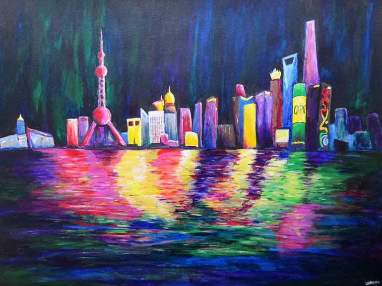 Shanghai Bund Skyline 2017 Painting acrylic on paper This painting name is Shanghai Bund Skyline, The Artist Wabyanko shows us a very colorfull representation of the Bund.