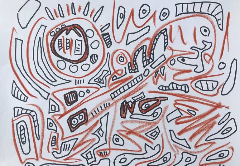 Ein von Benjamin Iddouche gemaltes Bild in Wachs auf Papier. Inspiriert von einem Video eines Hai-Angriffes in Ägypten.