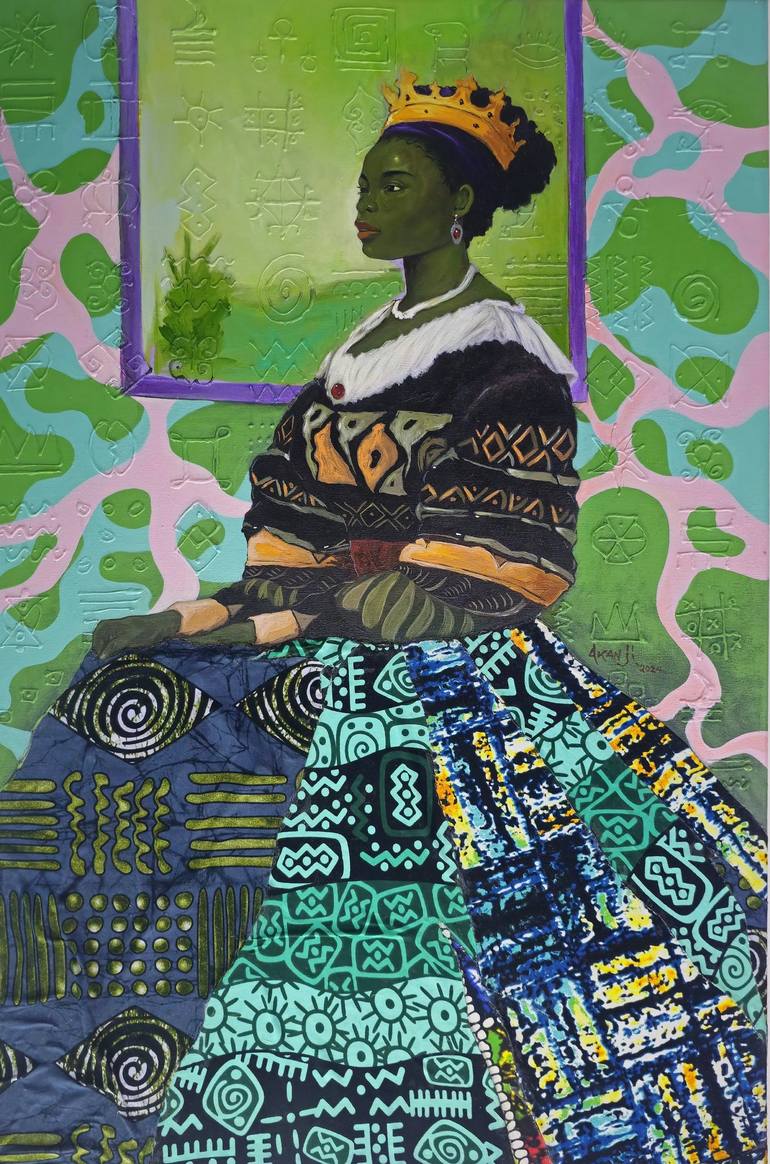 Akanji is a Black portrait artist who uses his work to celebrate the rich history and culture of West Africa, with a specific focus on the surrealism style. He re-imagines themes and narratives to create bold, fresh, and colorful images that spotlight the beauty and resilience of his creativity. By using art to directly embody the black beauty and nature narratives, Akanji aims to empower and inform viewers about his cultural heritage, and the beauty in nature- he hopes his vibrant paintings evoke feelings. In his work, Akanji incorporates textured relief on canvas, pattern and plain surface to explore his diversity and influence in his creative journey. Through this, he aims to show the beauty and diversity of his experience and its relation to other cultures.