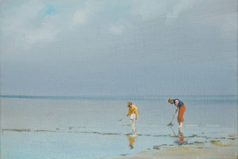 Early morning, grey sky, windy weather … two persons walking along the seashore… Who are they? How did they get there? What are they looking for? This oil painting shall turn your attention and thoughts from a daily routine, maybe only for a short while, but this short while will be enough to help...