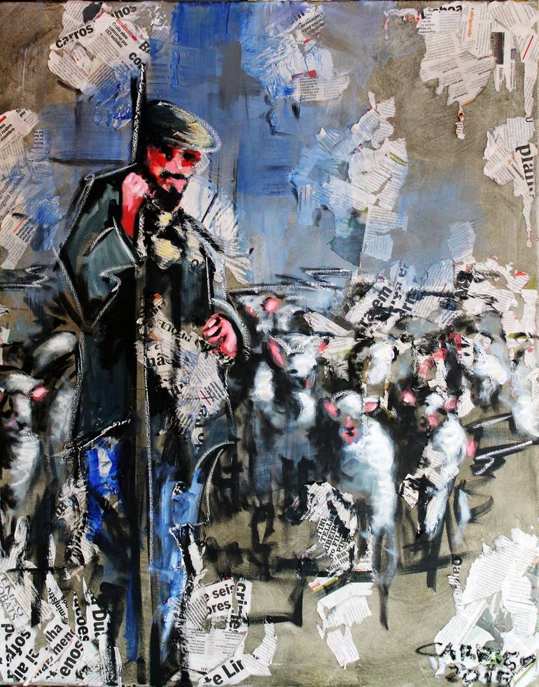 This painting represents a shepherd. This painting was part of an exhibition held by Carruço about old professions.