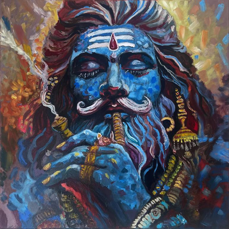 Oil on Canvas, “Shivoham” is a work that taps into the mystical concepts of Hinduism, portraying the duality of Shiva through the lens of the Aghori sect. This striking and evocative painting features an Aghori smoking cannabis, embodying a seemingly macabre yet fearless nature. Like Shiva, the lord...
