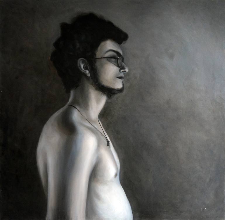 Side face, 2010, 100-100 cm, oil on canvas, from the project: "People of today" Exhibited: - Personal painting exhibition no.11 "Silent Enigma" at U Art Gallery, Bucharest, Romania (January 2015 - February 2015). - Personal painting exhibition no.3, "People of today", at Ioana Hotels, Sinaia, Roman...