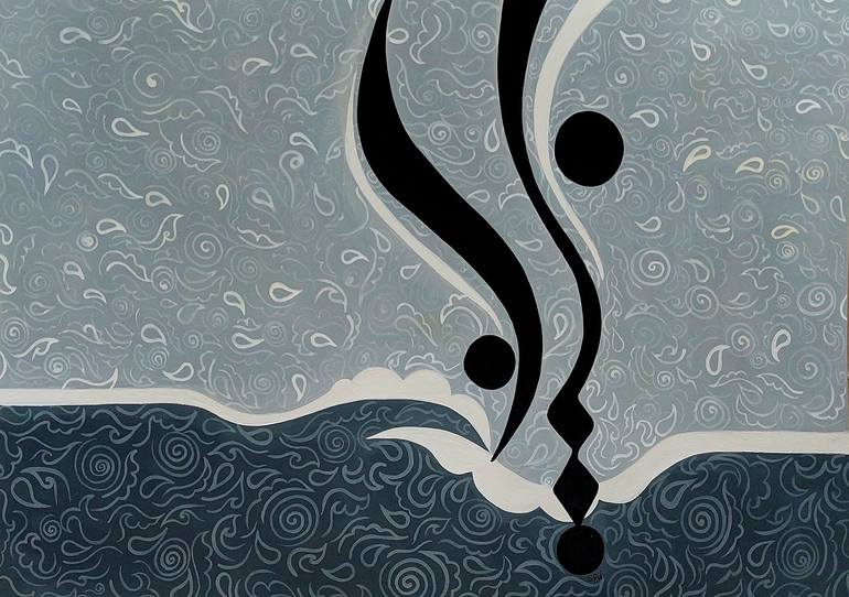 In art and iconography, a motif is an element of an image. I created this artwork in black, white and gray because I believe these are a strong composition of colours. It's traditional at the same time considered a modern painting with a story behind the motif.