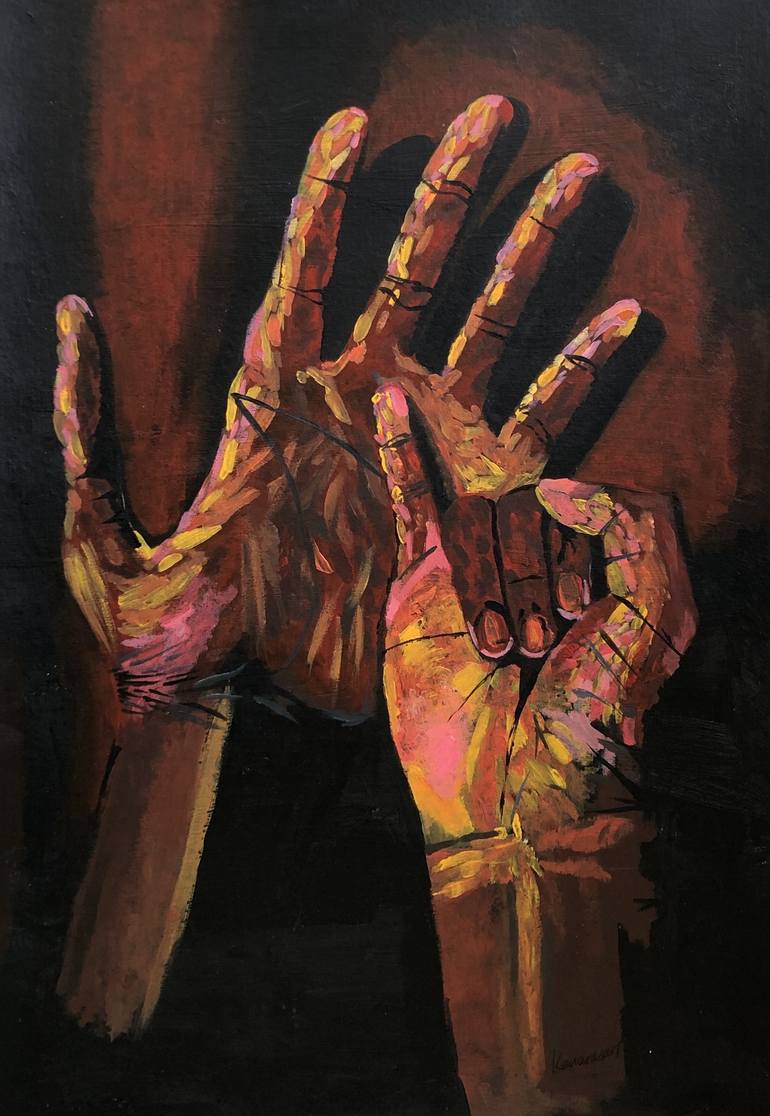 This work is inspired by Paul Wright, an artist who specialises in impressionism. It depicts a pair of hands that are held in a particular way, to highlight how fascinating the human form is. It is done in a similar style to Paul Wright's works, but with certain differences; the brushstrokes are not...