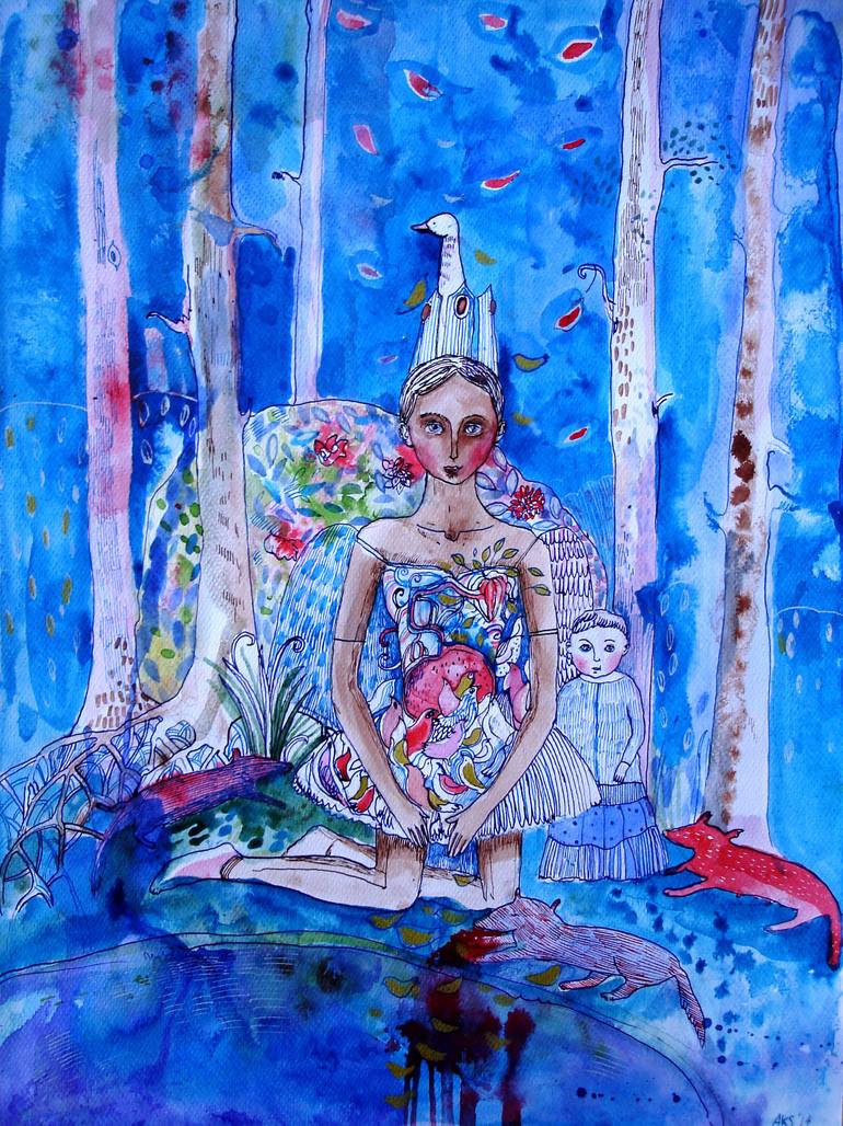 I am Lithuanian Artists’ Association Member and I was acknowledged by the Ministry of Culture of the Republic of Lithuania. I am a Lithuanian artist, creating in a wide range of artistic forms, such as illustrations, drawings, paintings, jewellery, stained glass and so on. In my artworks I tend to explore the inner aspects of human life put against the backdrop of the everyday. Living in an animal farm deep within the Lithuanian countryside, surrounded by velvet lakes and untamed woods, I draw my inspiration from nature, the local folktales and the fantasies they arouse. I graduated from the National School of Art and in 2008 I was awarded the Master of Arts by Vilnius Academy of Arts in Lithuania. Aurelija Kairyte-Smolianskiene creates aquarells, ink and oil on canvas paintings with dreamy images of flying people reaching for the sky. Her work is full of details portraying organic materials like grass, flowers, berries, leaves, fur, fish scales and bird feathers. The colours are very vibrant and lively. Aurelija’s paintings are vivid and colourful, very often with a woman or a girl figure in focus. Babies and centaurs, the astrological sign sagittarius, riders, unicorns and soldiers – all play their magical part in her colorful universe. Some of the people’s faces look sad, distressed or angry. The images often have beautiful animals: horses, foxes, cheetahs, wolves, deer, pisces, birds. She draws human faces with much detail. Her paintings are inspired by the Lithuanian countryside and nature. You might find many symbols within her art. Figurative and surrealistic images full of poetic and shamanic moods. Her semi abstract drawings are lively, detailed and organic, and the compositions and scenes are misty and surreal. ------------------------------------------------------ Don't hesitate to contact me: .artist instagram: aurelija.artist -------------------------------------------------------