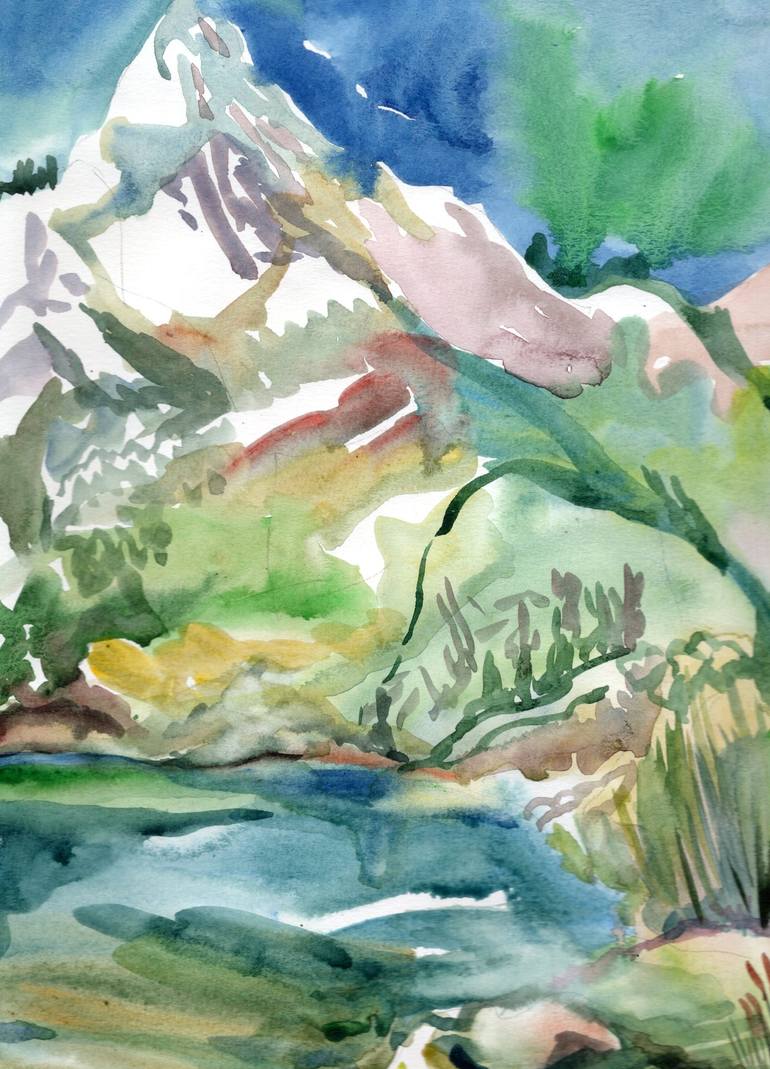 This plein-air piece was created on a warm, sunny morning at Silver Lake, situated at an elevation of 8,985 feet. Painted in the presence of a majestic mountain and the shimmering waters filled with alpine snowmelt, this artwork encapsulates the artist's impression of the moment. The clarity of the ...