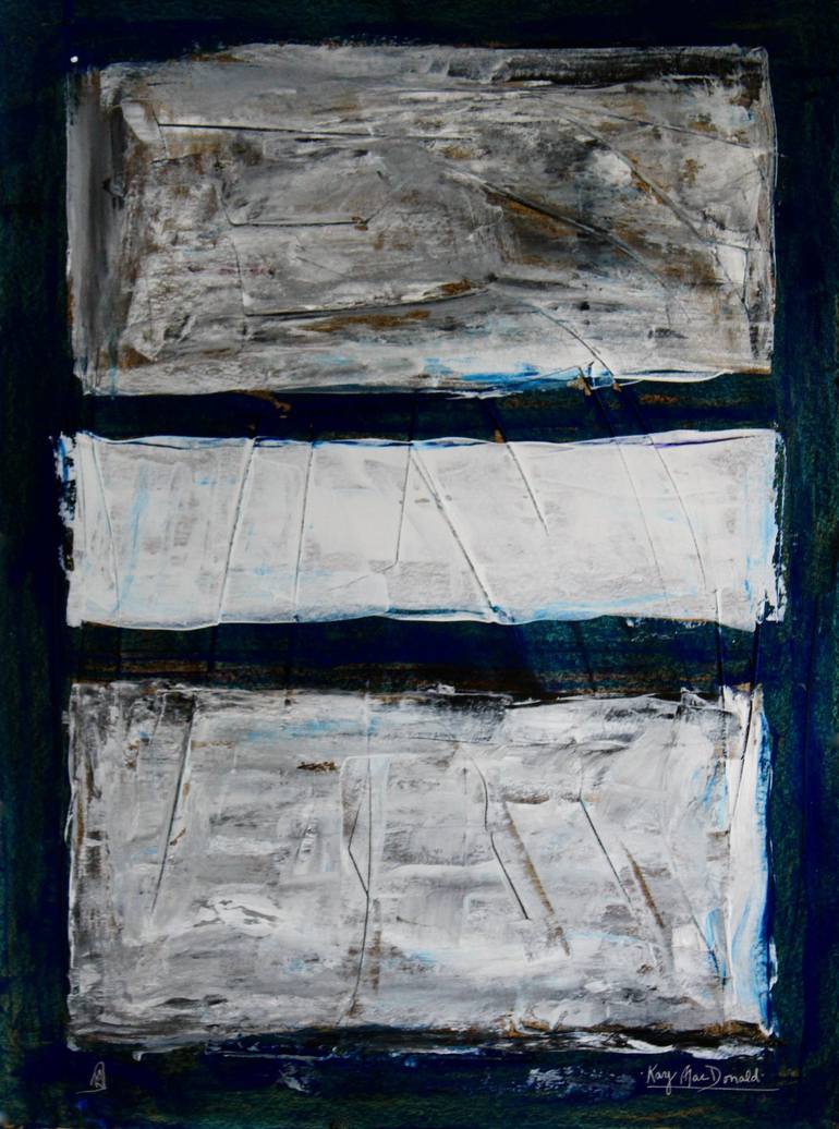 What/who inspired the work? This is part of my ongoing work inspired by Mark Rothko and other midcentury abstract expressionist color field artists. My piece is a more modern version, using white, gray, and brown acrylic paints on a rich deep indigo or navy blue background. It is signed in silver ge...