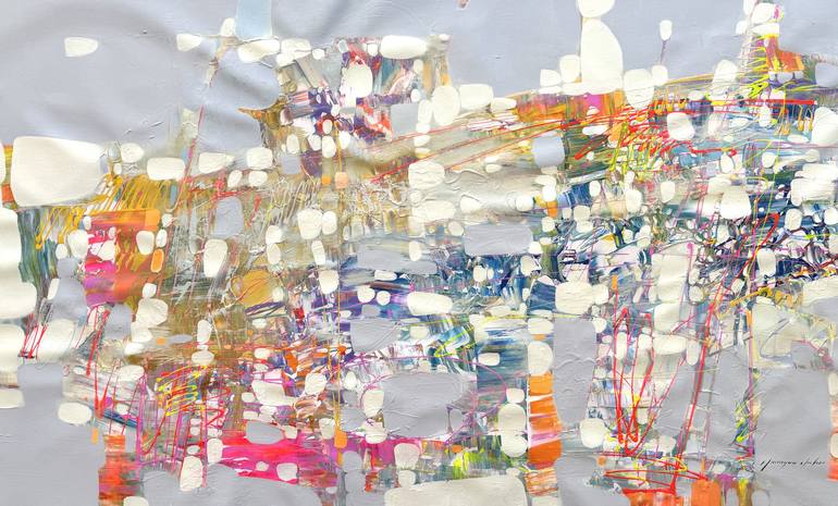 Artist: Vahe Yeremyan Work: Original Oil Painting, Handmade Artwork, One of a Kind Medium: Acrylic on Canvas Year: 2025 Style: Contemporary Art, Title: Silver Serenity, Size: 34" x 56" x 1'' inch, (86x142x3 cm), Unframed, Stretched on Wooden Bar, Gallery Wrapped, Ready to Hang. Yeremyan is ...