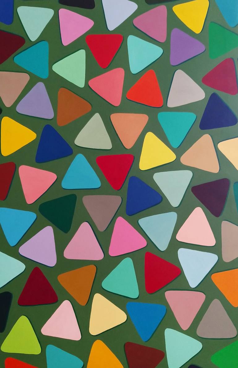This painting is a part of the 'Similitude' series, where the artist uses geometrical elements to evoke a sense of peace, harmony, equality and balance. In this painting, the artist imagined each triangular form to be an individual human being; each similar yet differing from one another. Just like ...