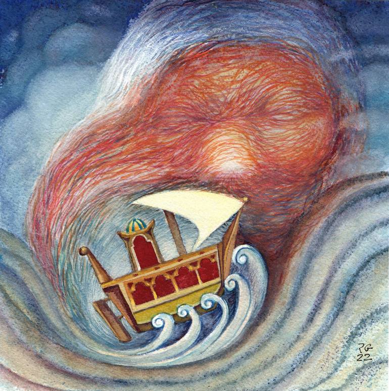 Sinbad's Journey is one of the most popular stories in The Book of the Thousand Nights and a Night. In this illustration I have tried to express the dangers faced by the intrepid seafarer at sea.