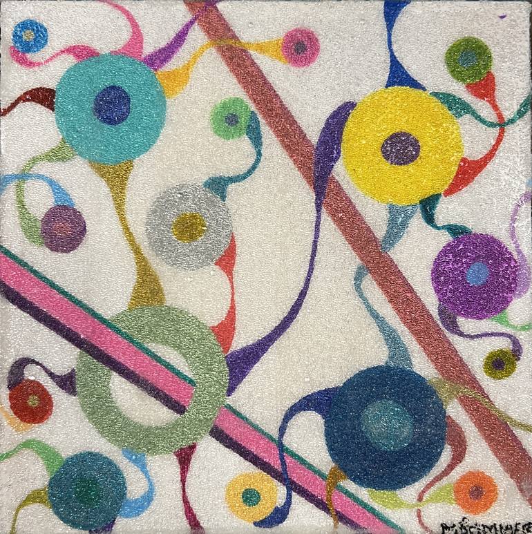 This is a smaller piece in my lyrical abstract series. It is painted with acrylic paint in wood panel on 5 sides. Then covered in a thick layer of glass bead in medium. This is abbot interconnection, interdependence, balance, joy, rhythm, and harmony. This series is about joy tempered by univers...