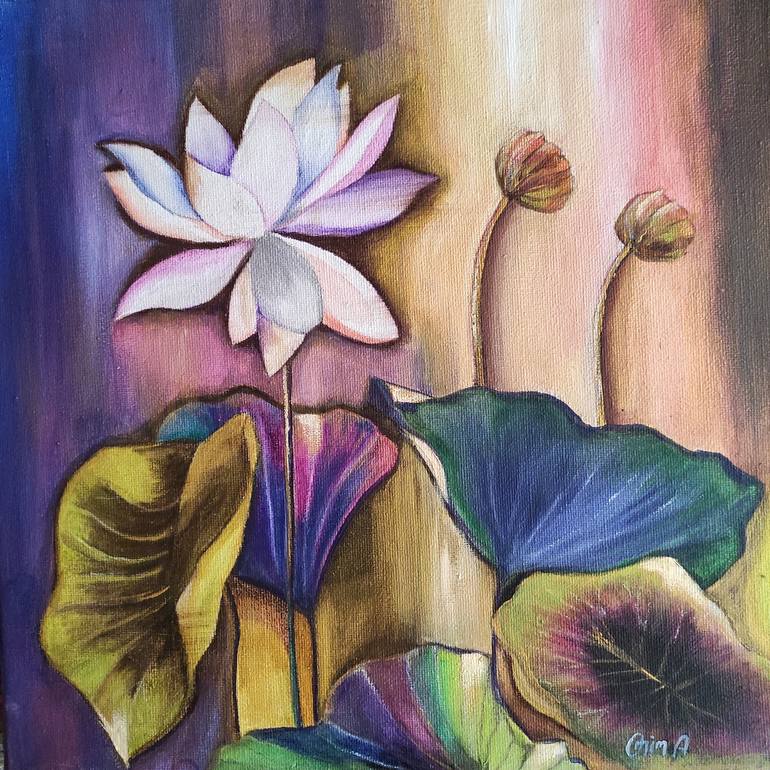 "Single Lotus 02" is a beautiful floral painting, created with layers of acrylic on canvas. The artist's expressive style brings a fresh perspective to the botanical subject. Inspired by nature, this artwork captures the essence of a single lotus flower. The soft color palette and delicate brushstr...
