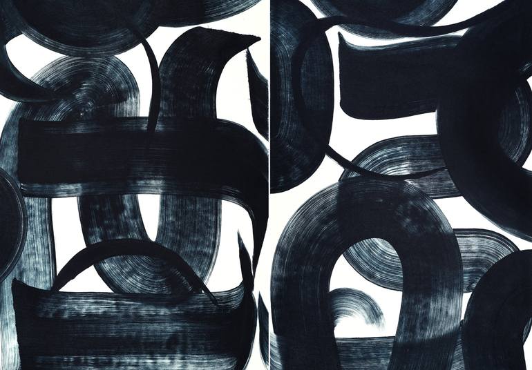 The sky bridge paves the way for human communication through space and time. Bold oil brush marks on gessoed canvas. Diptych two panels, each panel is 40 x 28 in. Altogether is 40 x 56 inches. Can be displayed together or separately. Shipping packed faced together in a sturdy box. Ready to hang.