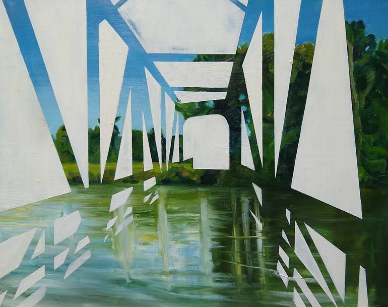 Working on site, I enjoyed the challenge of capturing the moving river with dynamic brushstrokes. Later, I began the bridge overlay on top to create an imaginary pathway to the opposite bank of the river. "Sky Bridge" is about imagining a hopeful future despite these challenging pandemic times. M...