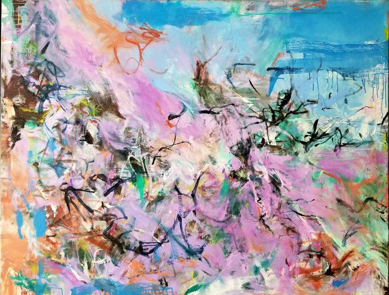 Opaque and glazed layers of paint; wide expanses of color are juxtaposed against more delicate, gestural brushwork, drips are often intentional and incorporated into the composition. nature-based imagery. Inspired by my love of Asian art, the improvisation of abstraction and watercolors done outdoo...