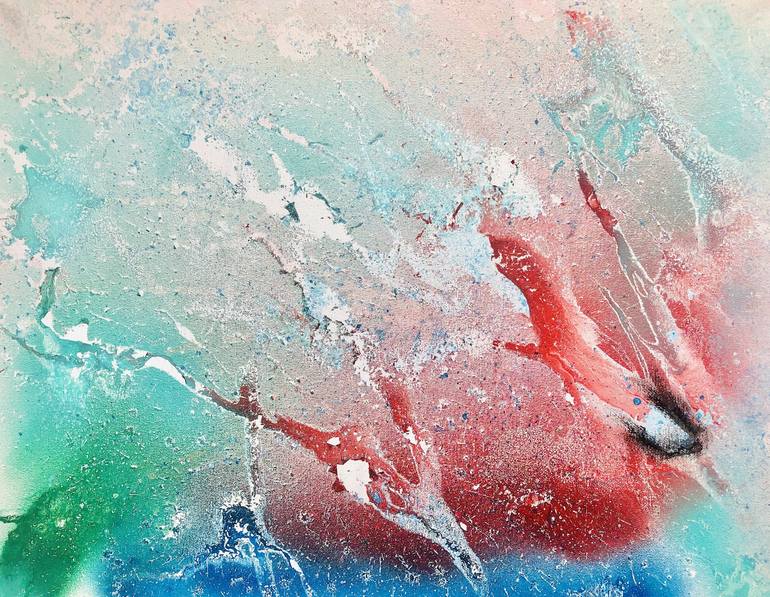 Sky Light. Created by Chris Duda using spray paint and rain. 16x20 stretched canvas. 1/1 Signed