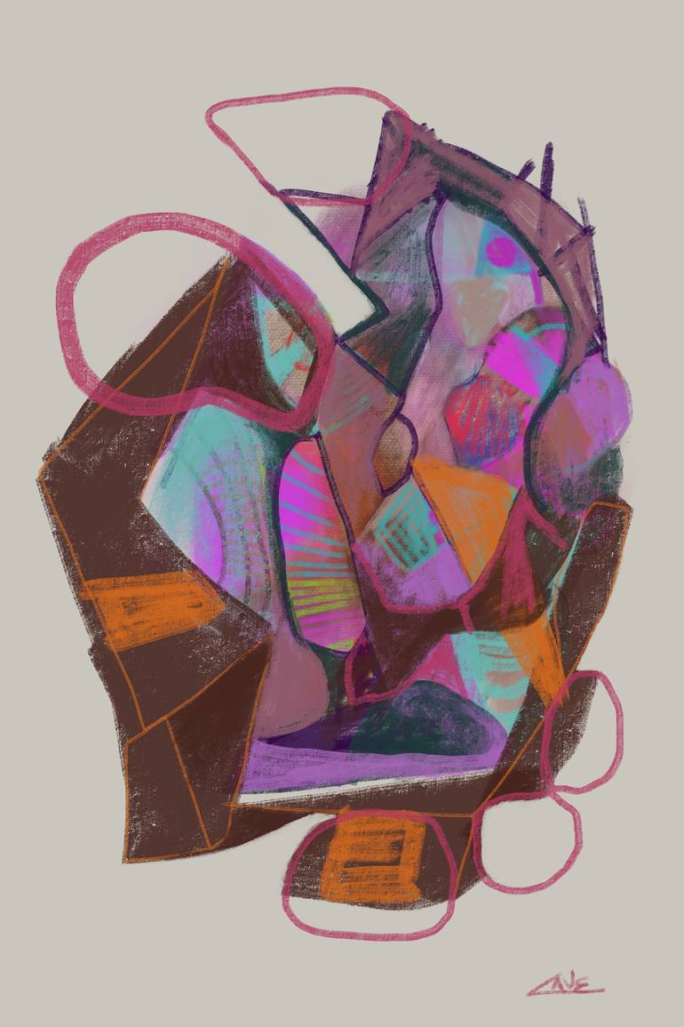 Painting with shifting, disparate elements, connected at once in a sort of hodge podge. Plain and simple.