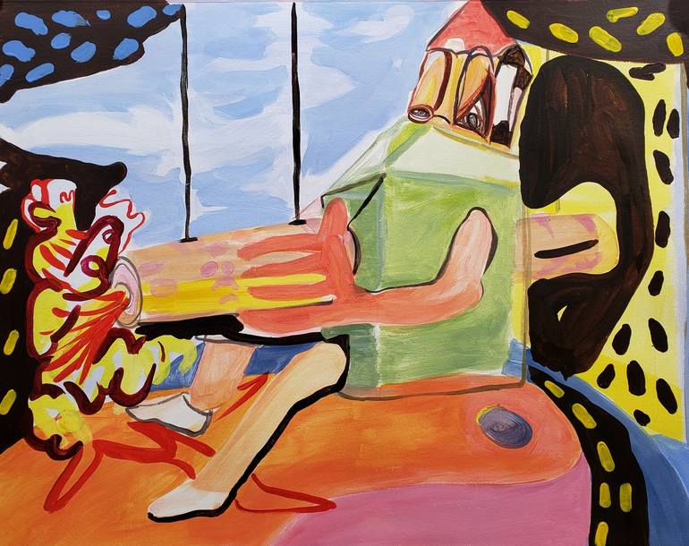 Acrylic and flashe on white gessoed paper. This will need to be matted.